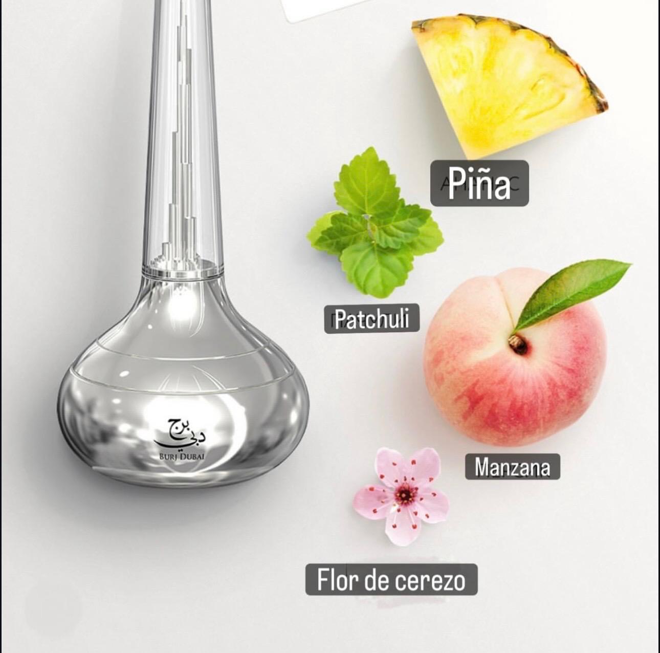 🌸Salida: flor del cerezo (cherry blossom) y durazno (melocotón). 🌸Corazón: piña, que aporta un matiz exótico y jugoso. 🌸Fondo: pachulí y almizcle, lo que le da profundidad, calidez y un toque sensual al terminar.