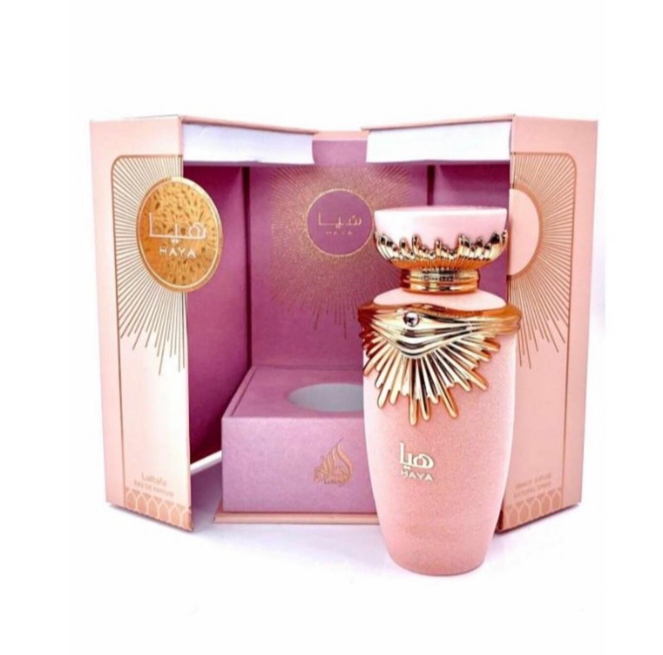 Haya de Lattafa es una fragancia femenina vibrante y dulce-floral que combina un estallido frutal de champán rosa, bayas rosadas y cítricos, seguido por un corazón cremoso de gardenia, jazmín y orquídea de vainilla. Se asienta en una base suave de praliné, ámbar y sándalo con un toque envolvente de castaña. Es ideal para uso diario en primavera/verano, para quienes buscan algo femenino, luminoso y elegante, aunque su duración no es de las más extensas y tiende a suavizarse tras unas horas