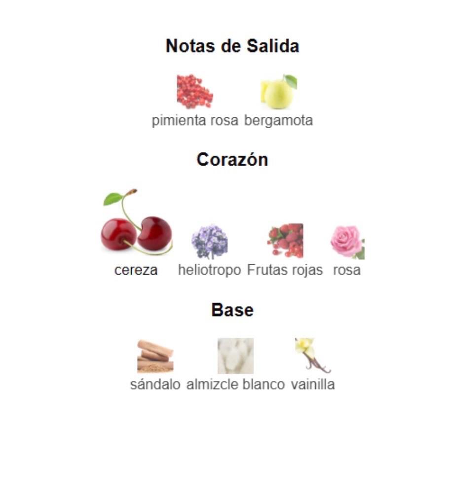 🌸 Notas de corazón: Rosa, jazmín y peonía