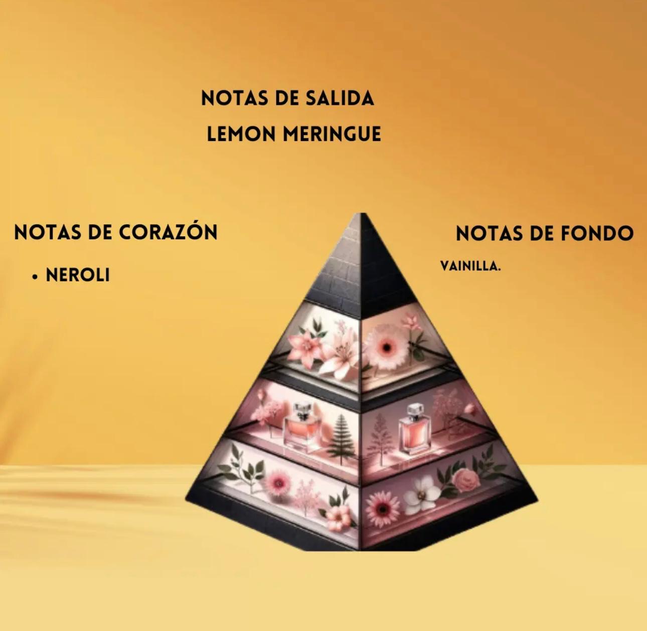 🌸Salida: Rosa, bergamota y pimienta rosa, que aportan un toque floral y fresco desde el primer instante. 🌸Corazón: Jazmín, lirio y notas afrutadas suaves, creando un aroma femenino y envolvente. 🌸Fondo: Almizcle blanco, ámbar y vainilla, que dejan una estela cálida, cremosa y duradera.